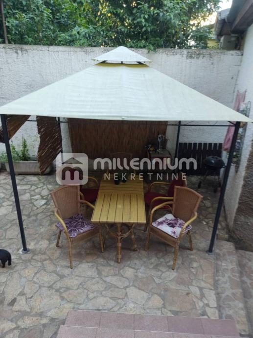 Od pomoćnih prostorija ima konobu od 60m2 i na korištenje uređenu okućnicu od 70m2 s popločenom terasom na koju ima direktni pristup iz stana.
