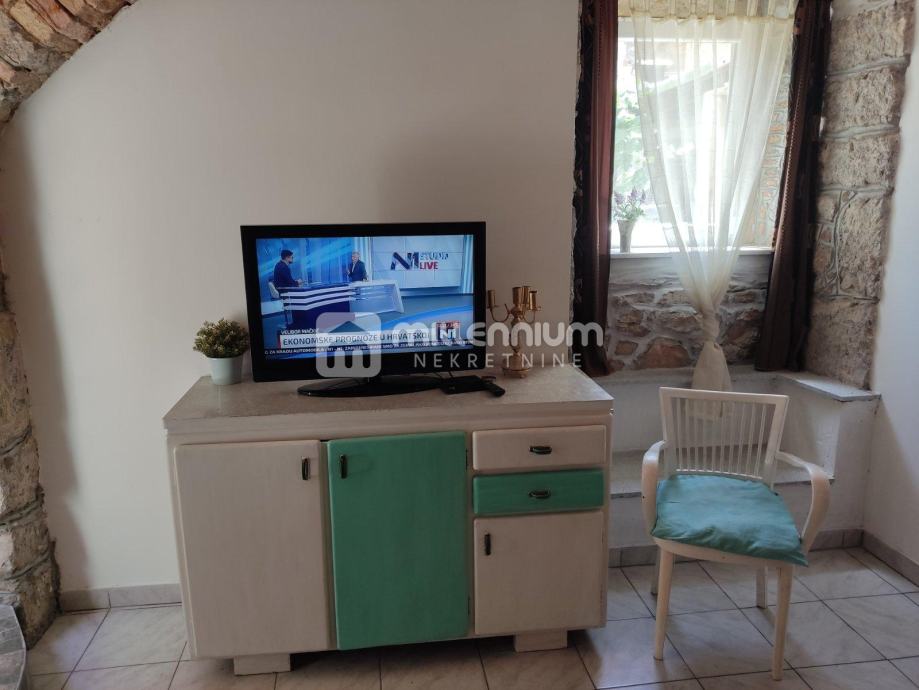 Stambeni prostor je adaptiran, moderno uređen i klimatiziran, a sastoji se od kuhinje s blagovaonicom, dnevnog boravka, spavaće sobe, hodnika i kupaonice.