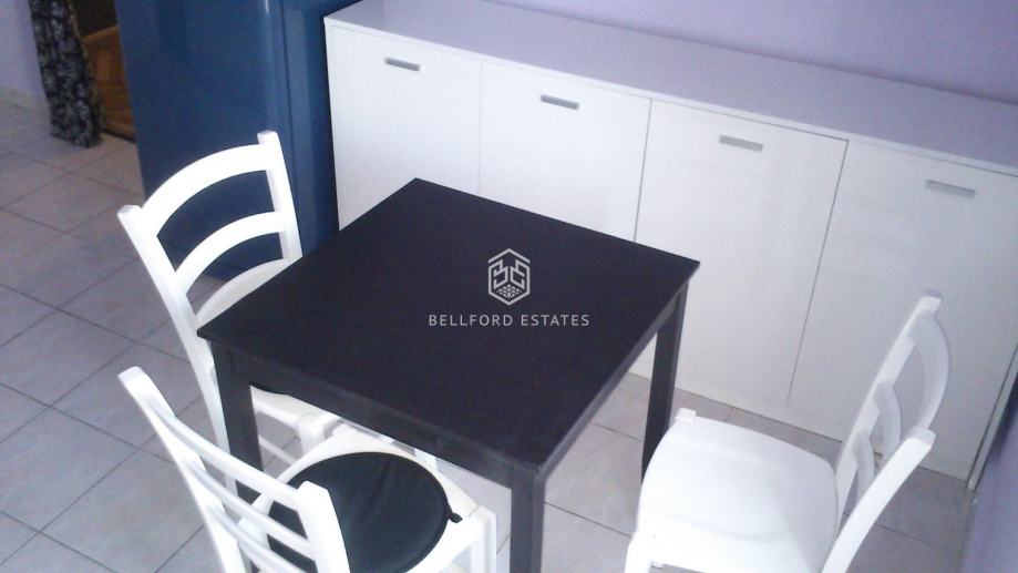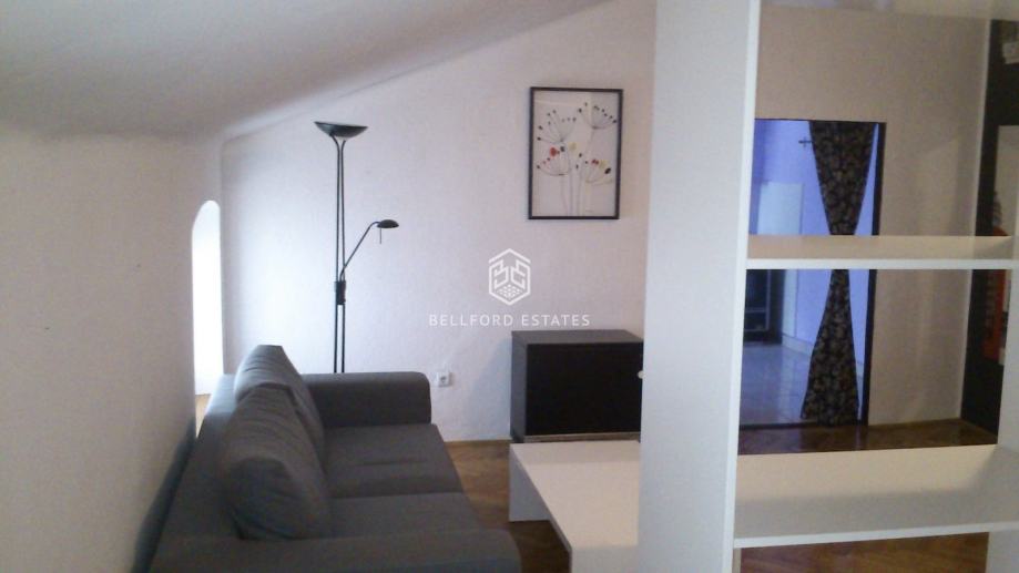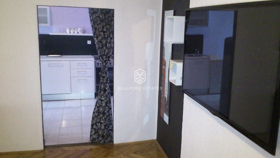 Iznajmljuje se jednosoban studio apartman optimalan za samca ili par. Spavaći i dnevni dio su integralni, dok je kuhinja odvojena. Iz kuhinje je omogućen ulaz na balkon i u kupaonicu.