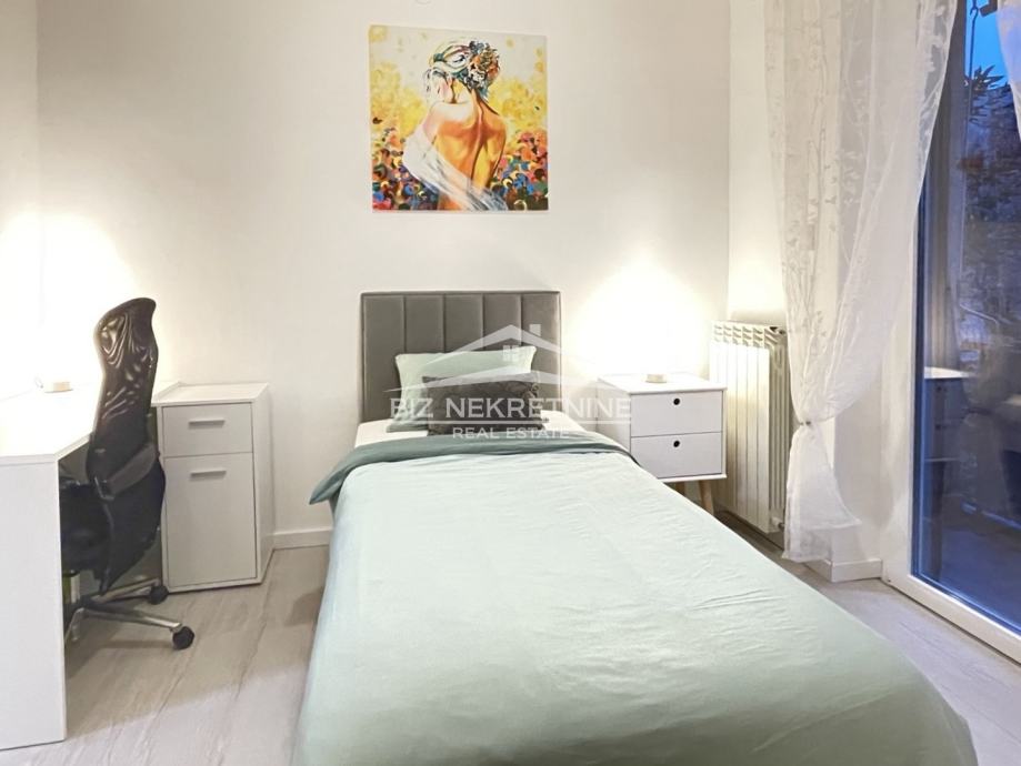Dvije spavaće sobe, jedna s bračnim krevetom a druga s pristupom na balkon. Obje sobe imaju velike ormar i radni stol.
