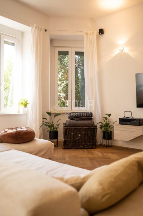 Prodaje se prekrasan i iznimno kvalitetno obnovljen stan na poželjnoj lokacija u Rijeci, gdje je dojam prostora i same mikrolokacije zaista iznadprosječan. Smješten je u prizemlju starije, ali vrlo dobro građene zgrade, koja je nedavno dodatno obnovljena, uključujući novu fasadu i krov. Stan je adaptiran 2022. godine, pri čemu su stručno izvedeni svi ključni radovi – zamijenjene su instalacije vode i struje, izvedena betonska ploča, postavljene nove podne obloge i PVC stolarija te ugrađena moderna kupaonica s podnim grijanjem.