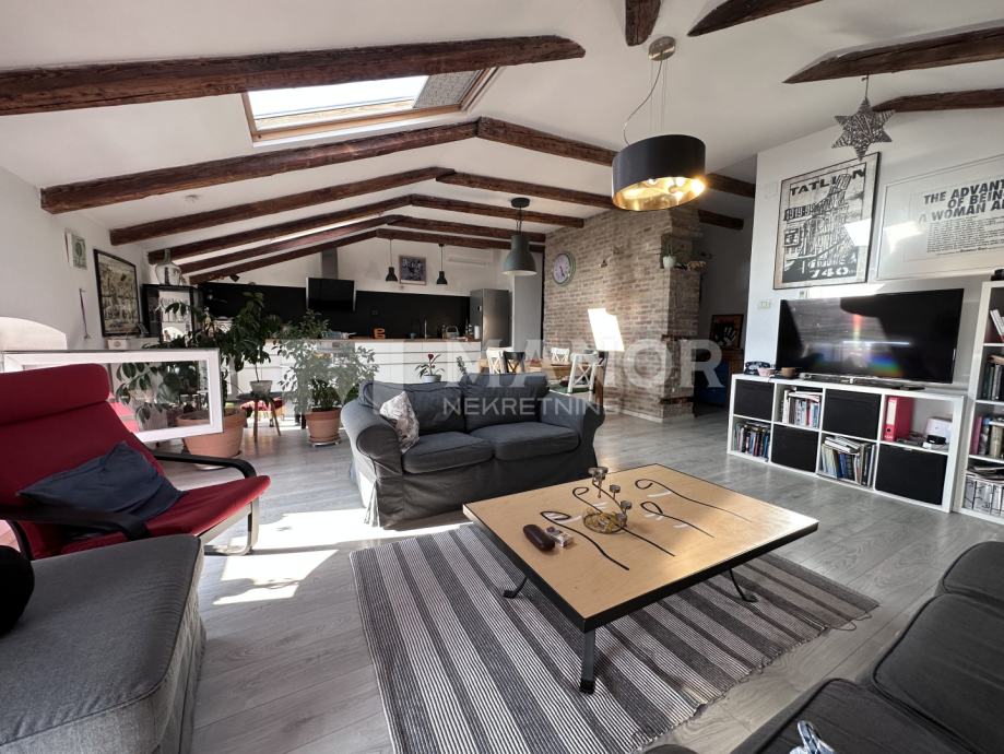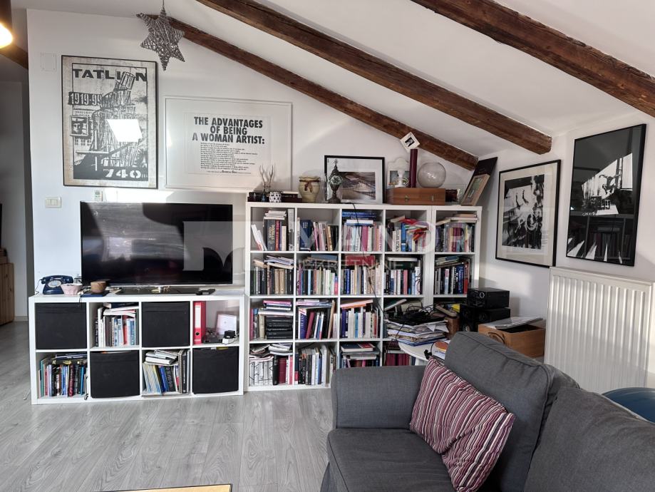 Stan se nalazi u visokom potkrovlju, a sastoji se od ulaznog hodnika, prostranog open-space