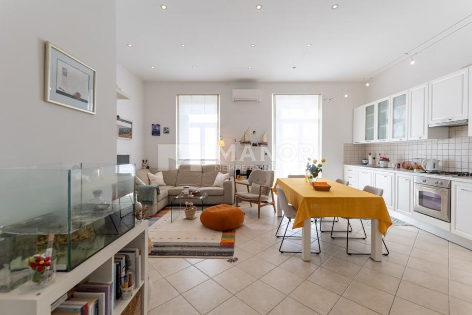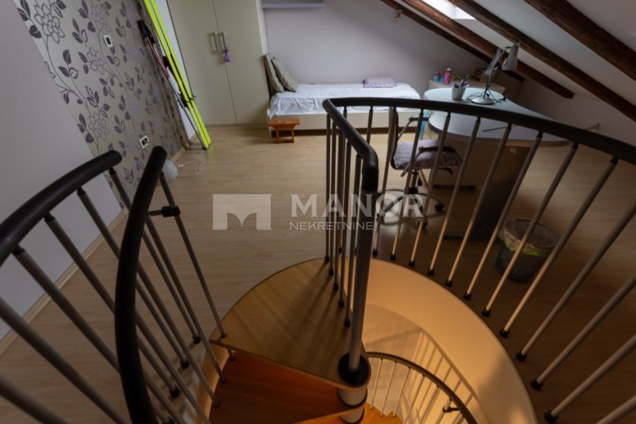 Manor predstavlja gospodski, dvoetažni 3S+DB stan ukupne površine 114 m², smješten u uvijek traženom