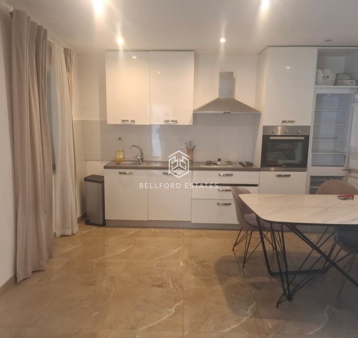 Dvoetažni stan se sadrži od kuhinje s dnevnim boravkom, kupaonice u prizemlju i tri spavaće sobe na katu.