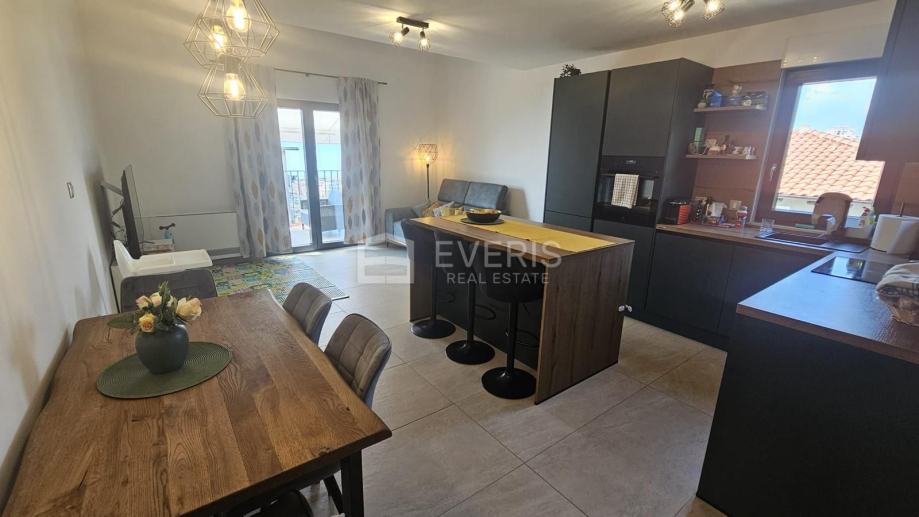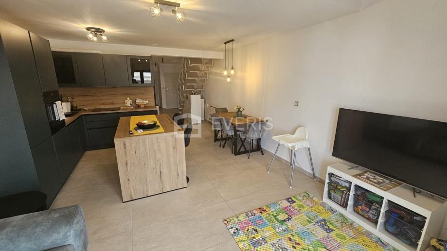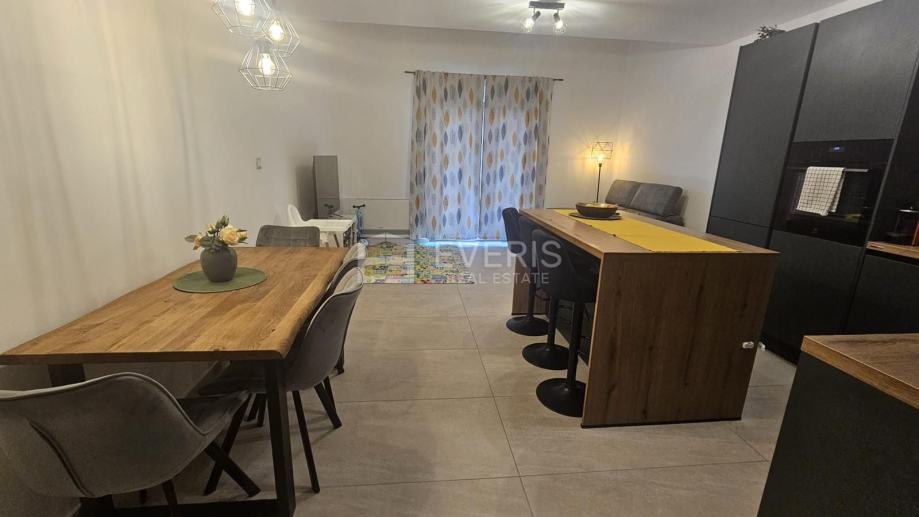 Stan je potpuno opremljen i namješten visokokvalitetnim namještajem.