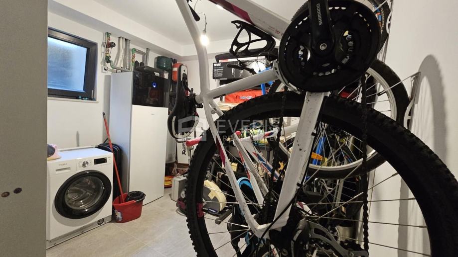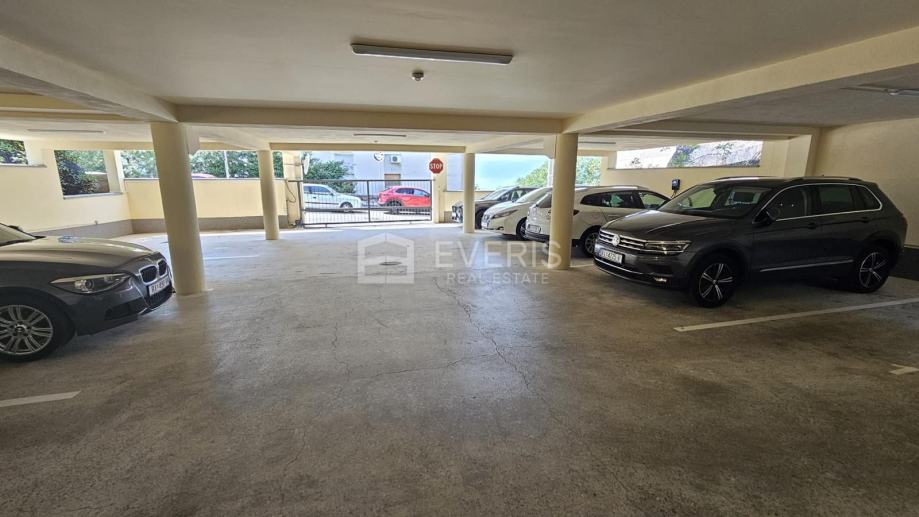 Nekretnina ima dva natkrivena parkirna mjesta ukupne površine 30,84 m2 (s punjačem za elektro vozila), te prostrano spremište u suterenu stambene zgrade površine 11 m2.