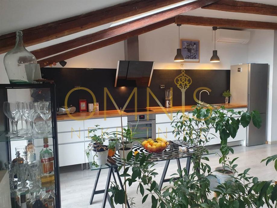 Stan se nalazi na 3.katu te se sastoji od hodnika, dva kupatila, četiri spavaće sobe, dnevnog boravka s kuhinjom i blagovaonom open space rasporeda.