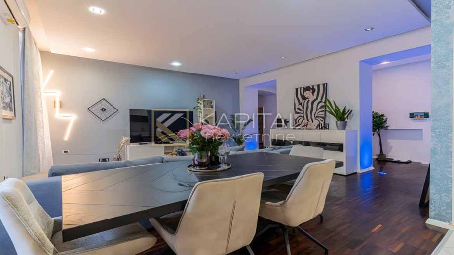 U ponudi imamo atraktivan luksuzni stan od 101,20 m2 s pogledom na more. Posebnost ovog stana je master bedroom od 30 m2 koji dolazi s privatnom kupaonicom opremljenom jacuzzijem. Druga kupaonica nudi dodatnu praktičnost, a stan je u potpunosti namješten i opremljen vrhunskom bijelom tehnikom. Stan je klimatiziran, a priprema za centralno grijanje s instalacijama za radijatore ispod svakog prozora već napravljena. Orijentacija stana je jug/sjever, što osigurava puno prirodnog svjetla tijekom cijelog dana. Kvalitetna PVC stolarija osigurava dobru izolaciju, a video nadzor dodatnu sigurnost. Za razgled nekretnine nazovite 091/540-8520 ili 099/2196 353.