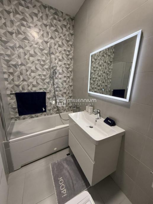 Stan je funkcionalno podijeljen u dvije zasebne i potpuno uređene stambene jedinice koje su namještene i spremne za korištenje. Na sjevernoj strani nalazi se jednosoban stan s dnevnim boravkom i balkonom poovršine 54m², dok je na južnoj strani smješten dvosobni stan s dnevnim boravkom površine 58m², osunčan i izuzetno ugodan. Ovakva organizacija prostora čini nekretninu idealnom za iznajmljivanje, bilo dugoročno ili turistički, ali i za kombinaciju stanovanja i poslovne namjene.