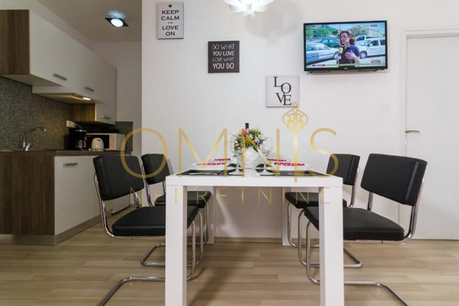 Stan je kompletno adaptiran i moderno uređen, te se sastoji od kuhinje s blagavaonom, dnevnog boravka, sobe i kupaonice.