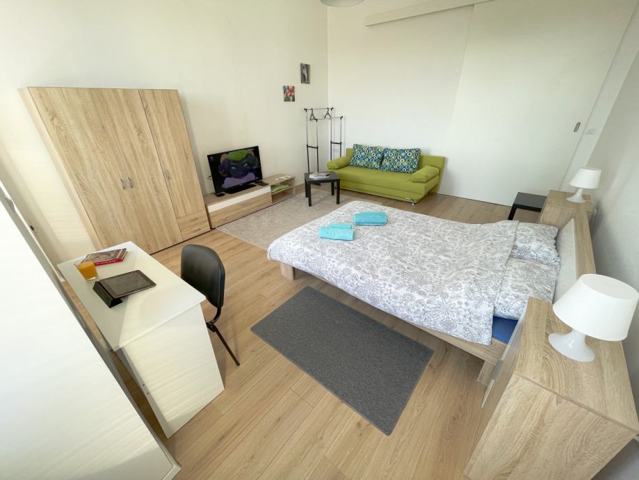 Apartman 1 - sastoji se od ulaznog hodnika, kupaonice, kuhinje te velike prostorije dnevni boravak / spavaća soba.