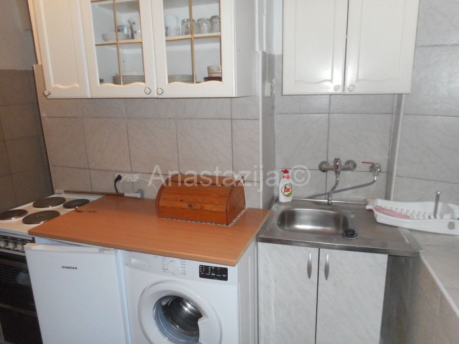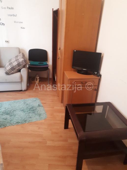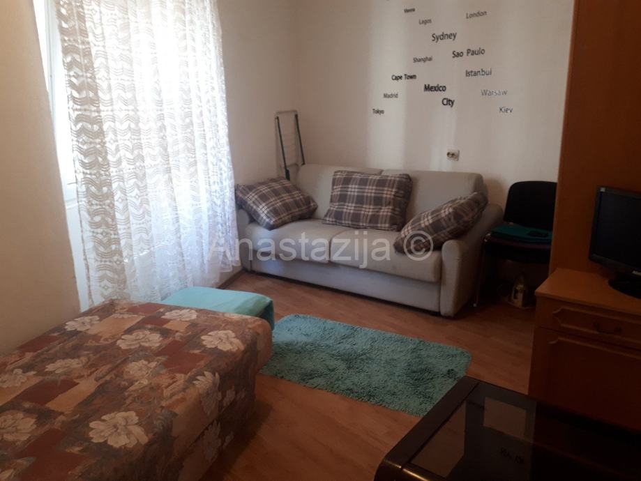 Simpatičan jednosoban stančić u strogom centru grada, na duže vrijeme iznajmljujemo. Namješten je; grijanje i kuhanje na struju. Postoji mogućnost instalacije interneta i telefona. Stan je idealan za jednu osobu. Cijena najma je 400 € + režije. Pričuvu plaća vlasnik, a polog u visini jedne najamnine je obvezan. Najmoprimac plaća i agencijsku naknadu. Za gledanje stana, javite nam se na broj 091/300-7303.