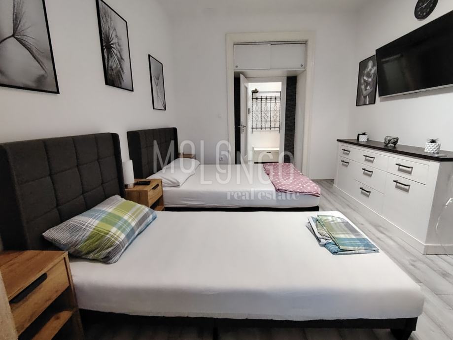 Iznajmljuje se potpuno adaptiran i moderno uređen stan na vrhunskoj lokaciji u samom centru grada, u neposrednoj blizini pomorskog i medicinskog fakulteta. Stan se sastoji od prostrane kuhinje s blagavaonom i dnevnim boravkom (open space), dvije spavaće sobe iz koje se izlazi na balkom, dugačkog hodnika i kupaone sa walk in tuš kabinom.
