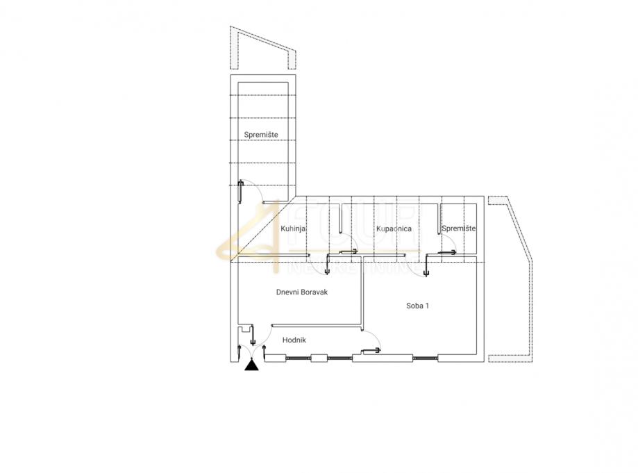 Sastoji se od dvije sobe, kuhinje s blagovaonicom, hodnika i kupaonice.