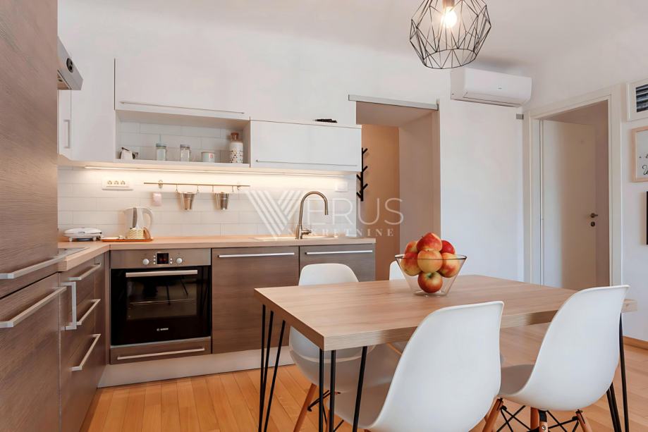 Verus nekretnine Vam predstavlja potpuno renoviran stan ukupne površine 77 m², legalno podijeljen u dvije zasebne stambene jedinice – jednosoban stan od 48 m² s djelomičnim pogledom na more i studio apartman od 29 m². Nekretnina je idealna kao investicija za dugoročni najam ili kombinaciju stanovanja i iznajmljivanja, a prema potrebi može funkcionirati i kao jedna cjelina.