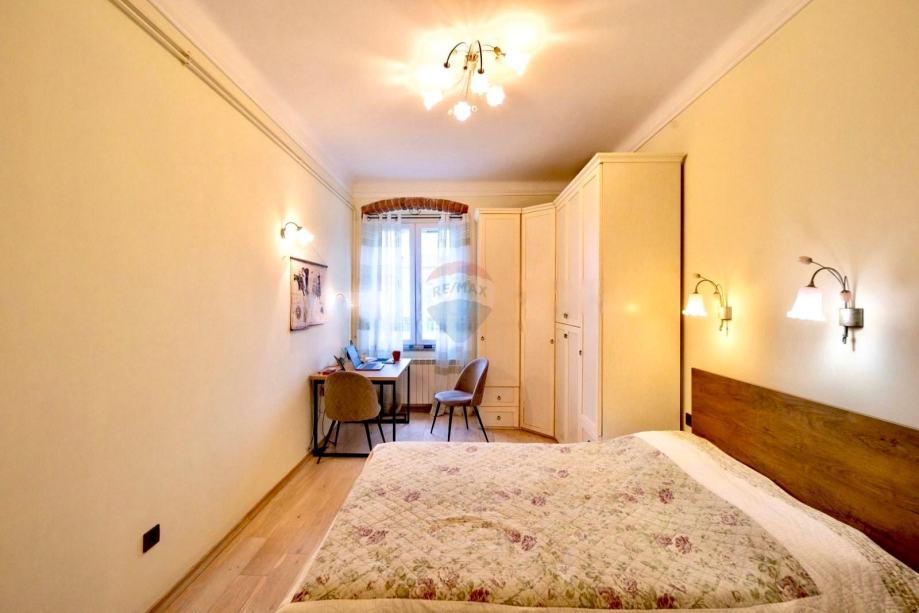 Potpuno renoviran, uključujući podove, instalacije, vanjsku stolariju, te sustav grijanja i hlađenja. Namješten je kvalitetnim namještajem, a Murano lusteri dodaju dašak luksuza svakom dijelu stana.