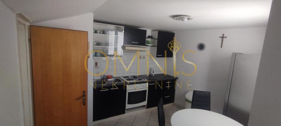 Prostor je raspoređen kroz ulazni hodnik, kuhinju s blagovaonicom, kupaonicu s tušem te prostrani dnevni boravak opremljen kaučem na razvlačenje, što omogućuje dodatni ležaj prema potrebi. Stan ima jednu glavnu spavaću sobu s dva kreveta, a na raspolaganju je i dodatna manja soba koja može poslužiti kao spremište, garderoba ili kompaktan kućni ured.