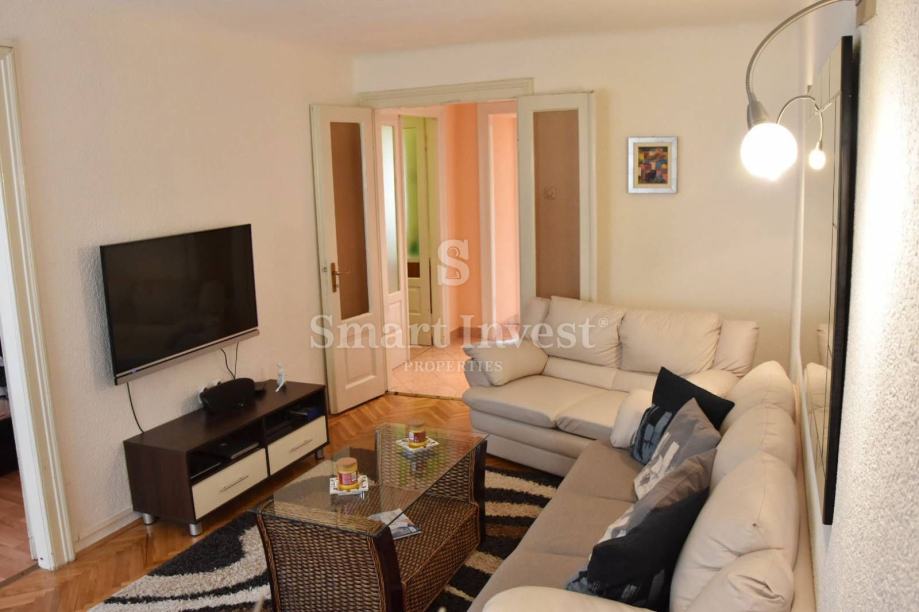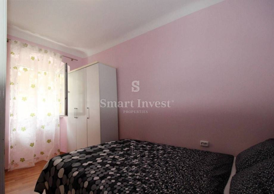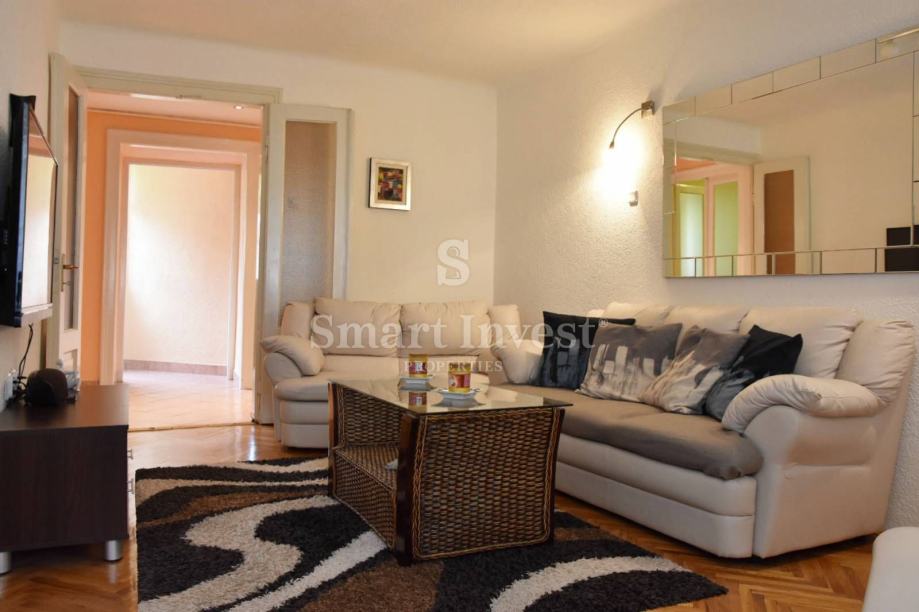 Stan se nalazi na 4. katu lijepe održavane zgrade te se sastoji od 2 spavaće sobe, dnevnog boravka, kuhinje, kupaonice, wc-a i hodnika. Stan je kompletno renoviran 2018. godine uključujući sve instalacije i novu PVC stolariju. Grijanje na Vaillant radijatore i klima uređaj.