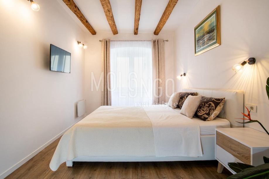 Iznajmljuje se luksuzan, potpuno namješten stan u samom centru grada. Stan se nalazi na drugom katu, a sastoji od dvije spavaće sobe, prostranog dnevnog boravka, moderne kuhinje i elegantne kupaonice.