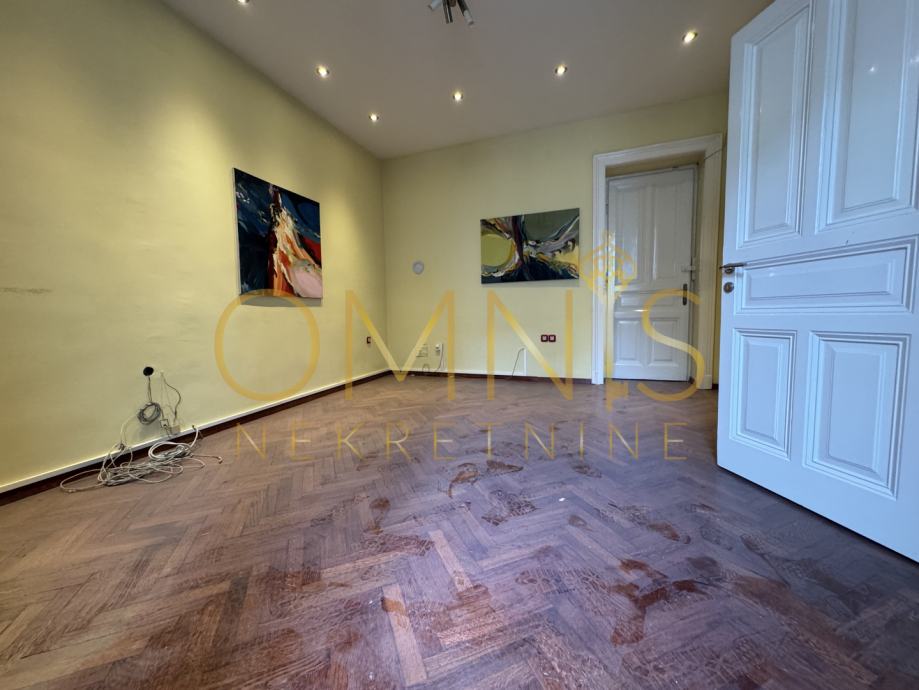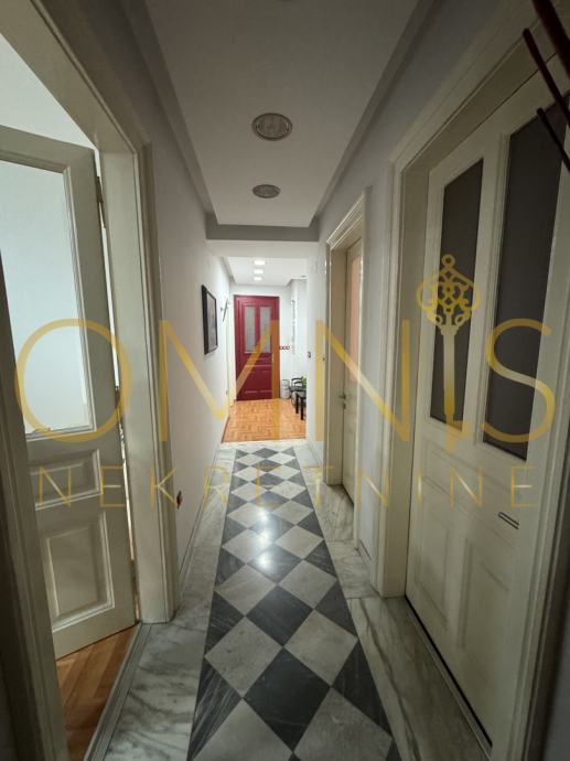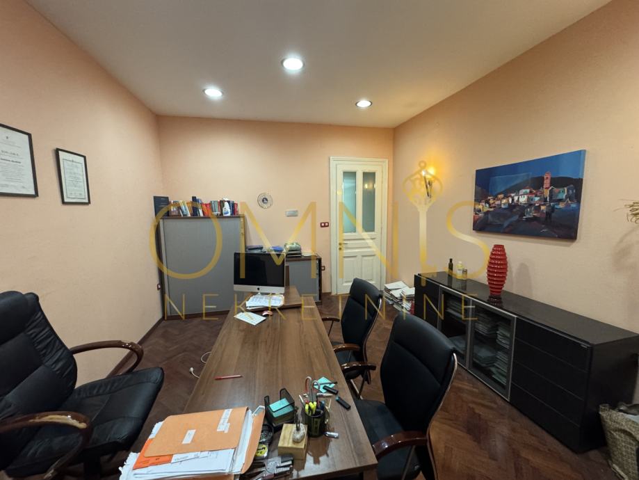 Prodajemo odličan stan u strogom centru grada. Sastoji se od ulaznog hodnika, četiri sobe, kupaonice s sanitarnim čvorom, sanitarnog čvora te balkona. Stan je uređivan pred cca 15 godina te su mijenjane sve instalacije struje i vode, ugrađena je ALU stolarija sa alu griljama, prebrušeni prelakirani parketi itd.. Stan se koristio kao ured, no pošto stan ima dva ulaza sa stubišta veoma lako može biti pretvoren u dva ili više apartmana. Sa balkona se pruža pogled na okolne zgrade. Zgrada je uredna i održavana. Odlična nekretnina u strogom centru grada, sav sadržaj je na pješice. Idealno kao investicija, no opet pogodno za stanovanje.
