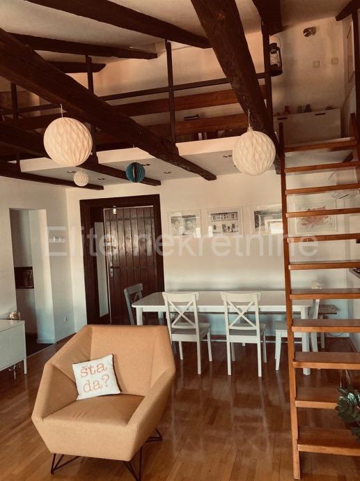 Posredujemo u prodaji stana na traženoj lokaciji u centru grada. Stan ima 103 m2 stambenog prostora, a sastoji se od hodnika, tri spavaće sobe, kupatila, kuhinje te dnevnog boravka s galerijom gdje je još dodatni krevet.