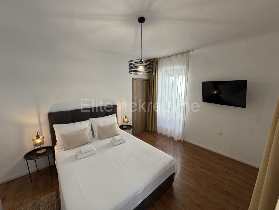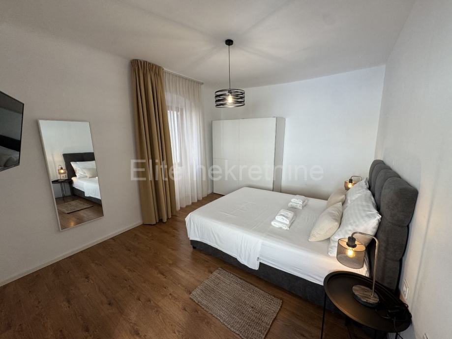 Posredujemo u prodaji apartmana koji se nalaze u strogom centru grada, s pogledom na Korzo, dok se ulaz u zgradu nalazi samo desetak metara od same šetnice. Ukupna površina stana je 82 m², a prostor je podijeljen na dva odvojena apartmana koji dijele zajednički ulazni hodnik, opremljen pametnim bravama i video nadzorom za dodatnu sigurnost. Svaki apartman ima zasebnu spavaću sobu i dnevni boravak s potpuno opremljenom kuhinjom te kaučem na razvlačenje, što omogućava smještaj do 4 osobe po apartmanu. Oba apartmana sadrže po dvije televizije, s pristupom zemaljskoj i satelitskoj TV, kao i Netflixom u dnevnom boravku, pružajući bogat izbor zabavnog sadržaja.