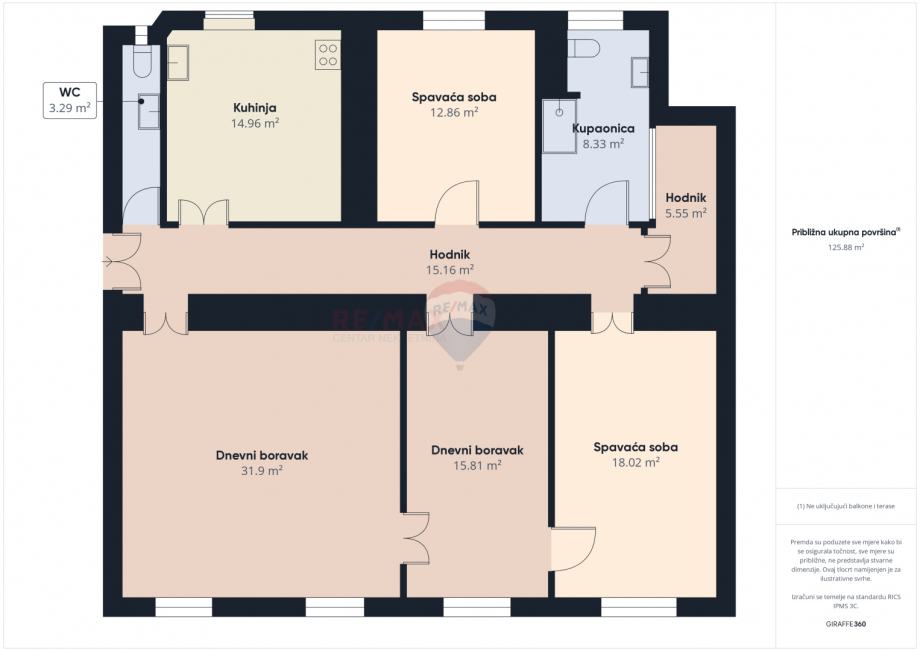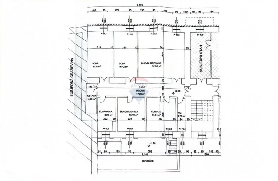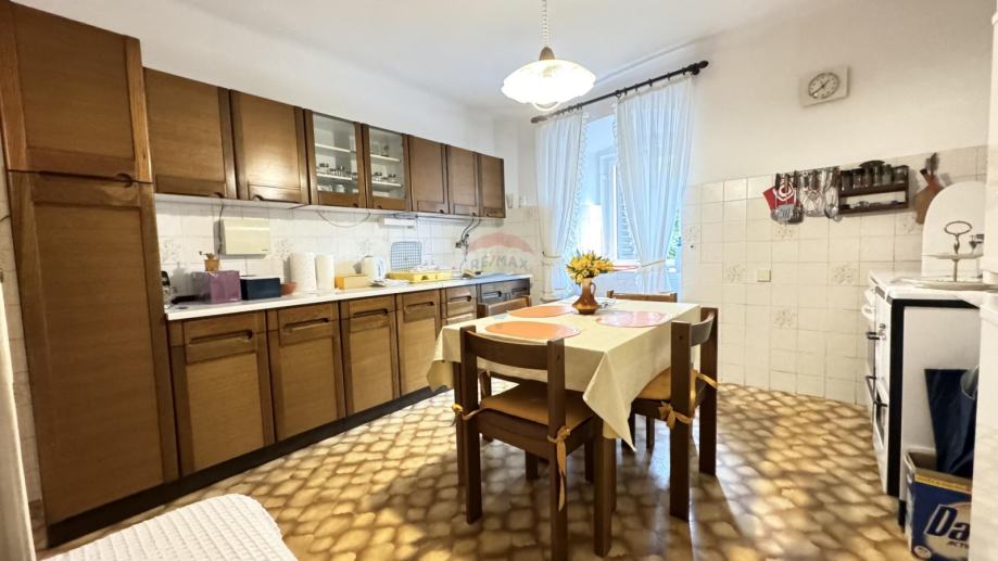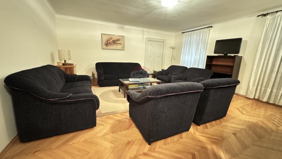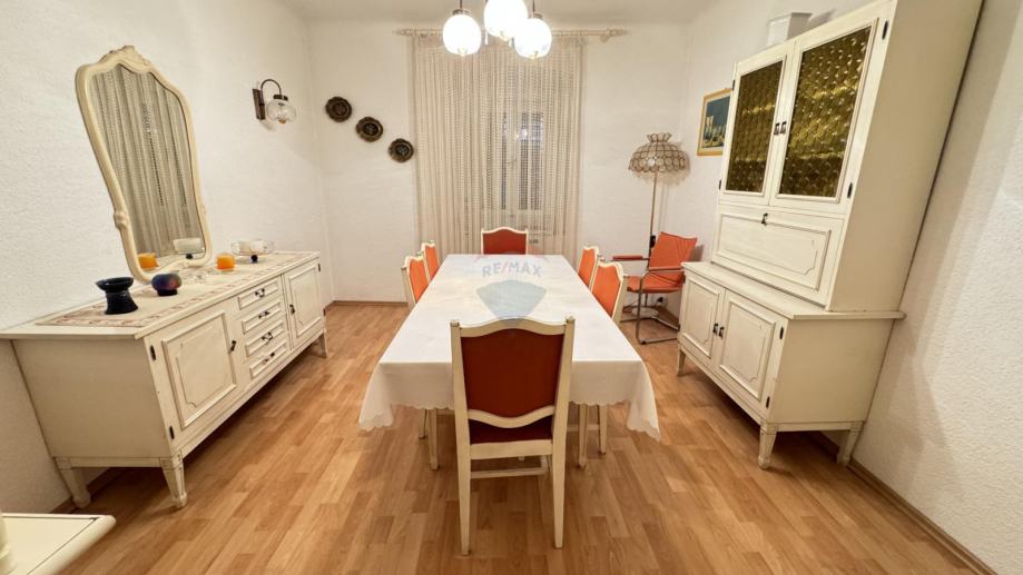 Sastoji se od tri spavaće sobe, dnevnog boravka od čak 33m2, renovirane kupaonice te odvojenog WC-a, kuhinje s blagavaonicom te ostave.