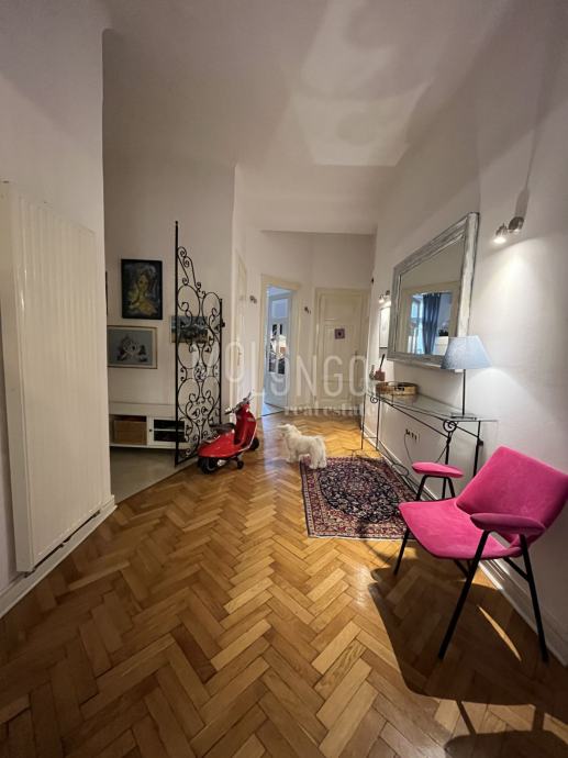 Ovaj prostrani stan nalazi se na drugom katu stambene zgrade, u mirnoj ulici bez automobilskog prometa, što osigurava mir i tišinu unatoč lokaciji u centru grada. Prostire se na konfornih 140 kvadrata i sadrži sve što vam je potrebno za luksuzan i ugodan život.