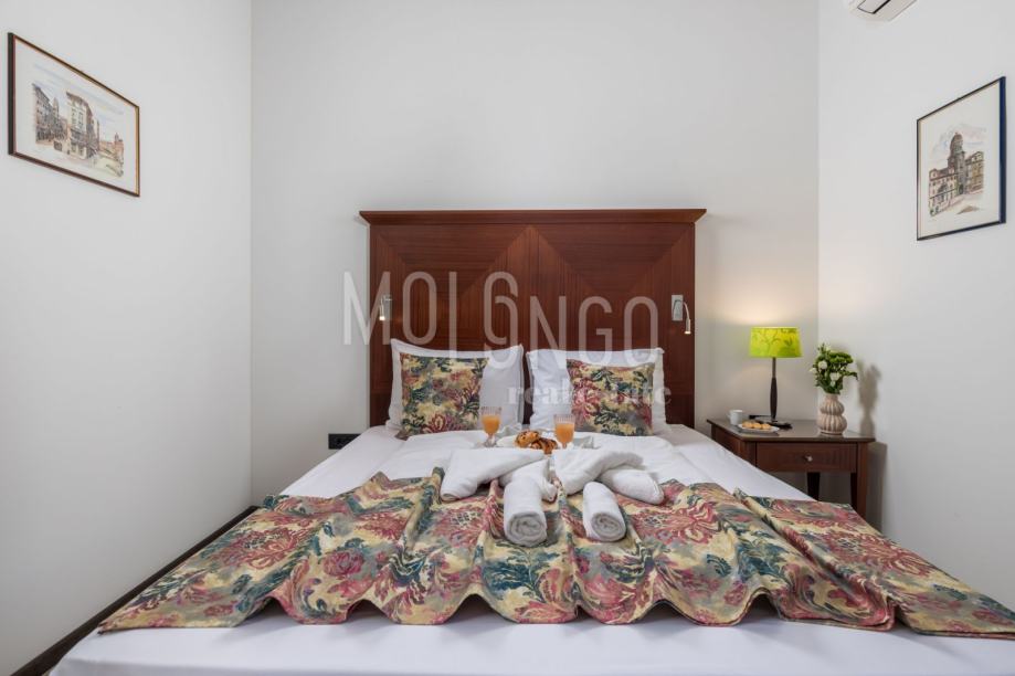 Molo Longo predstavlja stan površine 144,70 m2 u centru grada. Nalazi se na 2. katu i sastoji se od 5 soba, kuhinje, izbe, kupaonice, wc-a, predsoblja, hodnika i terase. Prodaje se kompletno uređen i namješten. Stan se sa svojih 5 zasebnih jedinica (soba) uspješno iznajmljuje te je kao takav odlična prilika za investiciju i bavljenje dnevnim/turističkim najmom. Uredni papiri, čista dokumentacija.