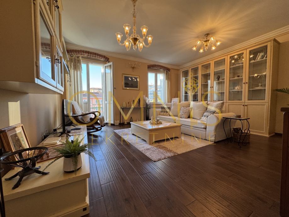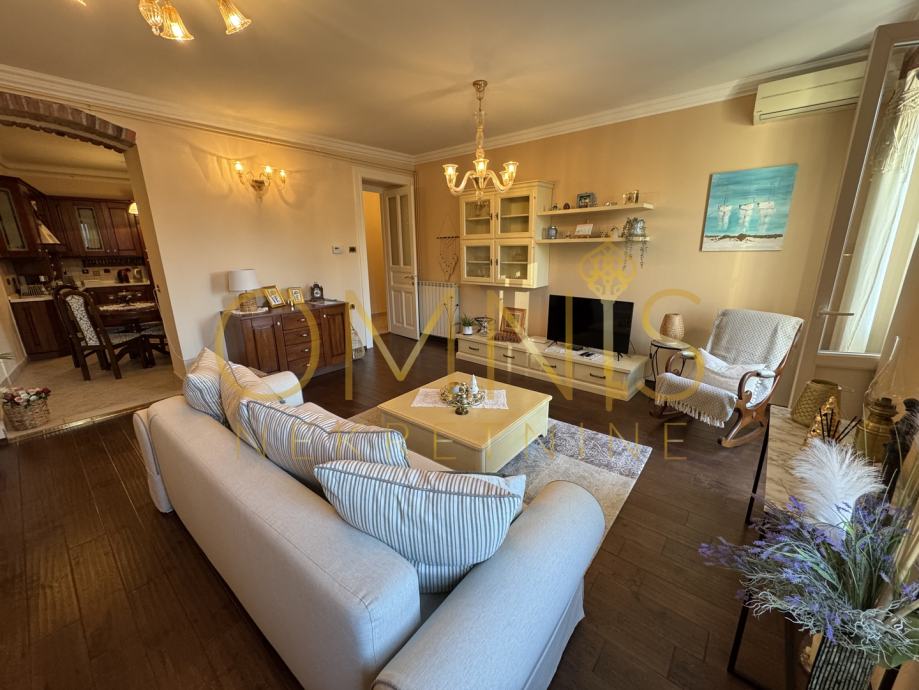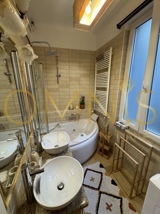 Stan je kompletno renoviran od podova, svih instalacija, vanjske stolarije, sustava grijanja I hlađenja. Prodaje se potpuno opremljen, namješten kvalitetnim namještajem, Murano lusterima u cijelom stanu.
