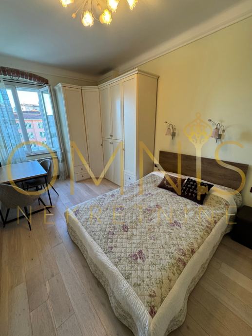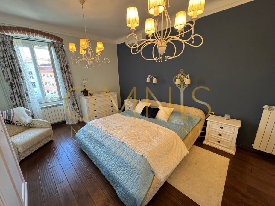 Iznajmljujemo prekrasan stan u staroj jezgri grada Rijeke. Nalazi se na četvrtom katu u staroj austrougarskoj zgradi. Sastoji se od dvije velike spavaće sobe s bračnim krevetom i ugradbenim ormarima, dnevnim boravkom s izlaskom na balkon, kuhinje i blagavaonice s kuhinjom koja je ručni rad te rađena po mjeri, hodnika, ostave, kupaonice s sanitarnim čvorom s jacuzzi kadom. Za grijanje u stanu postavljeno je etažno plinsko grijanje te za hlađenje klima uređaj. U stanu je postavljena kvalitetna Murano rasvjeta te je novo namješten. Ovaj stan je namješten s stilom te je pun svjetla. Javna garaža se nalazi odmah blizu stana. Blizina svih sadržaja te lijep raspored i uređenost čine ovaj stan jako interesantnim na tržištu.