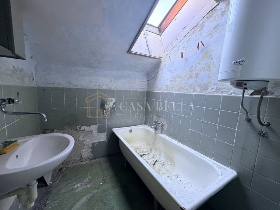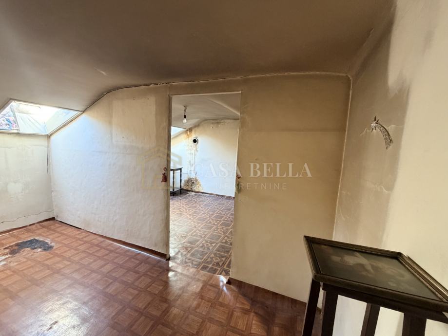 Casa Bella iz ponude izdvaja stan u strogom centru grada površine 54,50 m², smješten u visokom potkrovlju uredne i održavane zgrade. Stan se sastoji od hodnika, kupaonice, odvojenog wc-a, kuhinje, ostave, dnevnog boravka i spavaće sobe.