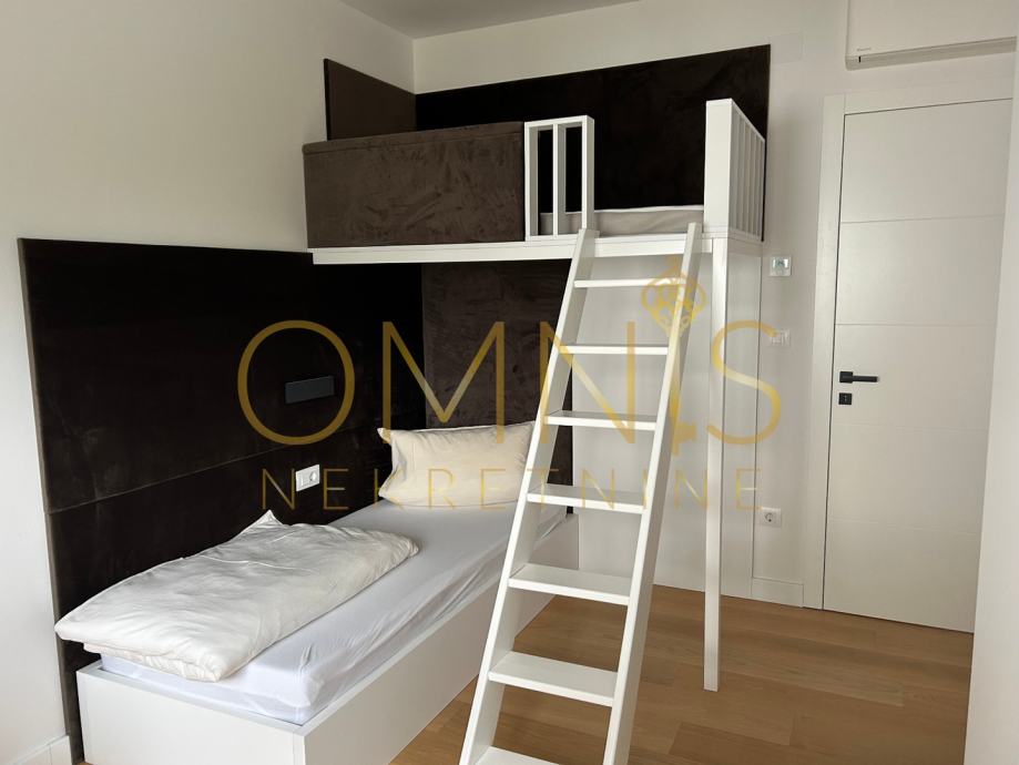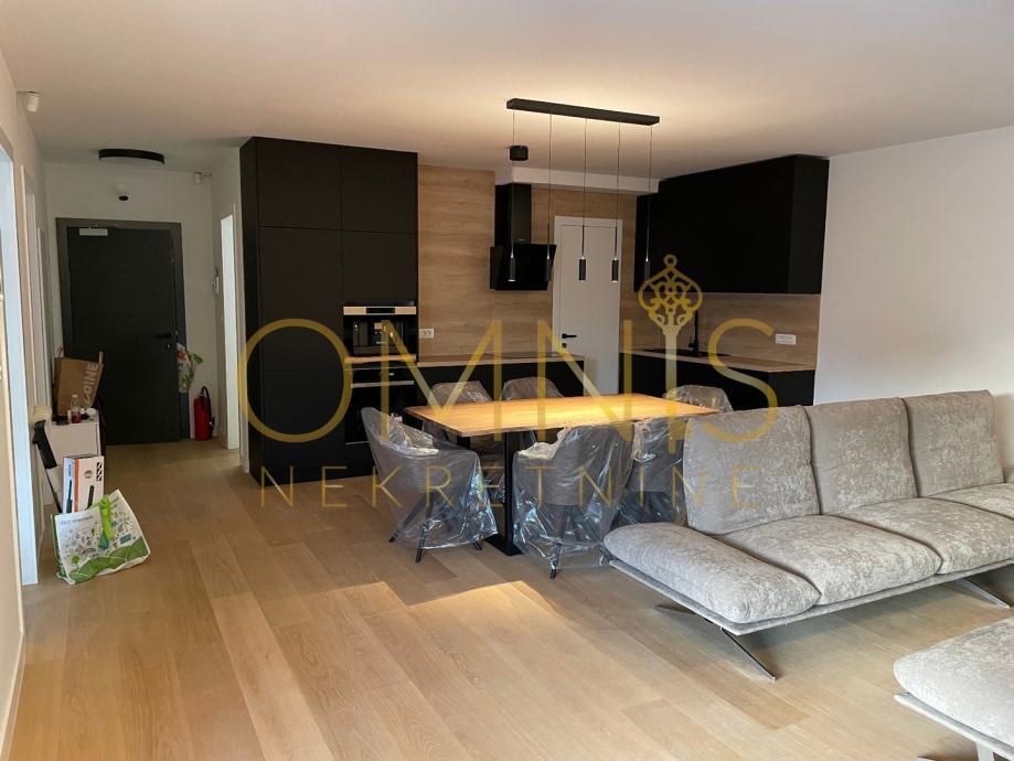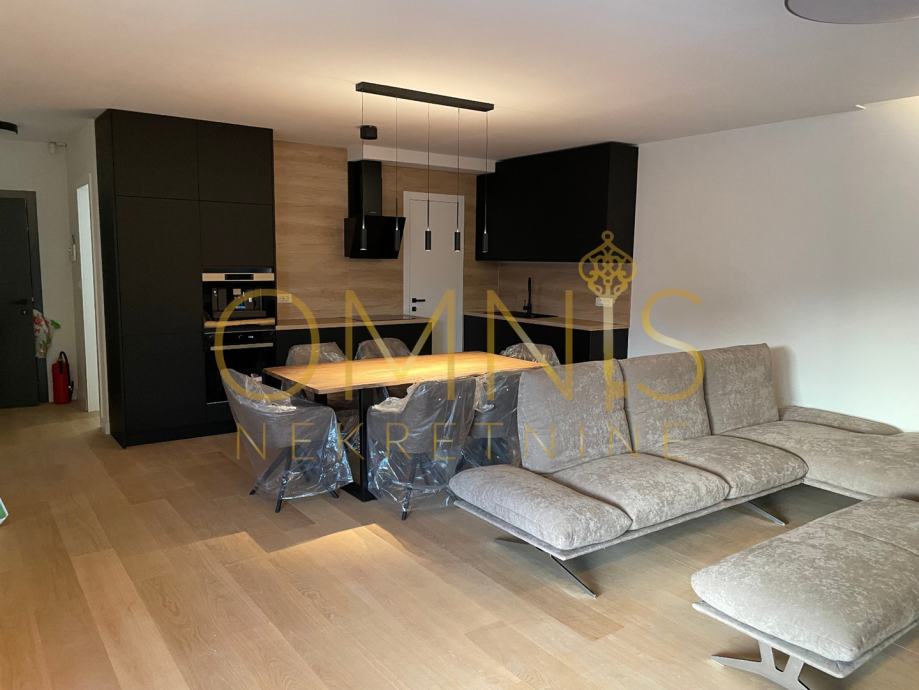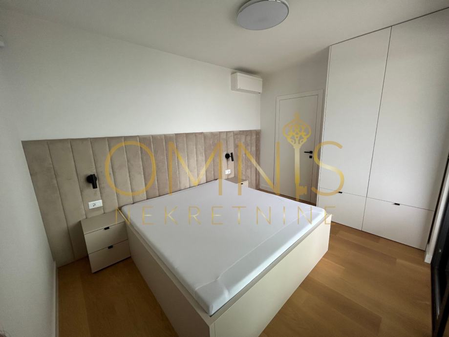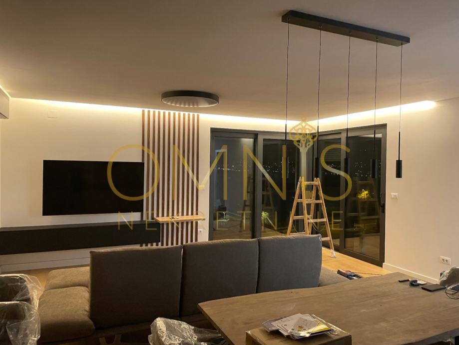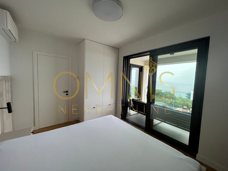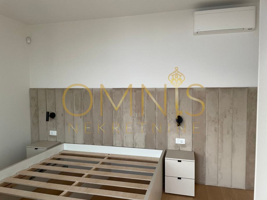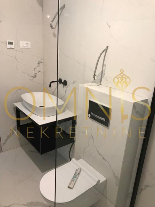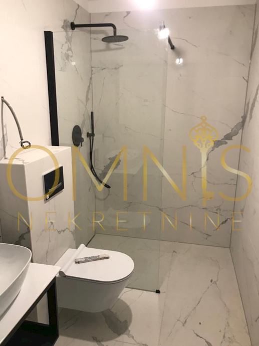 Prodajemo stan u novogradnji na prvome katu. Sastoji se od dvije spavaće sobe, dnevnog boravka s kuhinjom open space koncepta, ostave, kupaonice s wc-om te balkona. Sa balkona se pruža panoramski pogled. Grijanje je na podno na dizalicu topline te klima uređaj u svakoj prostoriji. Stan je kompletno uređen i namješten te se kao takav i prodaje. Neto korisna površina stana iznosi 74,28 m2, spremište 5,51 m2, zatvoreno parkirno mjesto 14,33 m2 te vanjsko parkirno mjesto 11,86. Stan je južne orijentacije te je cijelog dana osunčan i osvjetljen. Prekrasna nekretnina na atraktivnoj lokaciji svega par minuta pješice od plaže.