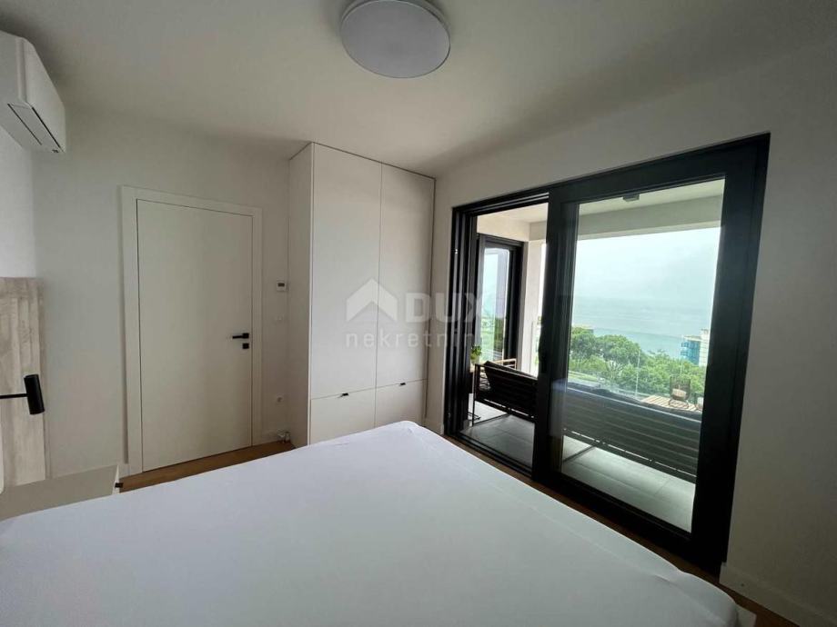 Prodajemo stan u novogradnji na odličnoj i vrhunskoj lokaciji. Stan se nalazi na prvome katu. Sastoji se od dvije spavaće sobe, predprostora, kuhinje s dnevnim boravkom open space koncepta, kupaonice s wc-om, strojarnice te prostranog balkona sa kojeg se pruža panoramski pogled na more i Opatiju. Stan je kompletno namješten i uređen i kao takav se prodaje. Neto korisna površina stana iznosi 74,28 m2, spremište 5,51 m2, zatvoreno parkirno mjesto 14,33 m2 te vanjsko parkirno mjesto 11,86 m2. Grijanje i hlađenje je podno grijanje na dizalicu topline te je stavljen klima uređaj u svaku sobu. Stanu također pripada i spremište u suterenu zgrade, parkirno mjesto u garaži te vanjsko parkirno mjesto. Luksuzna nekretnina na prekrasnoj lokaciji između Rijeke i Opatije. Blizina svih sadržaja te lokacija sa puno zelenog okoliša koji pruža mir i tišinu.