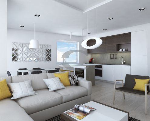 Sastoji se od dvije spavaće sobe, dnevnog boravka, kuhinje s blagovaonicom,