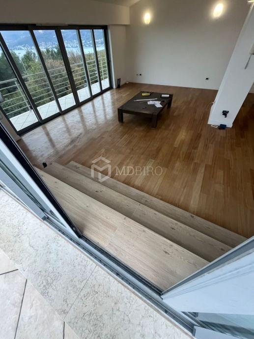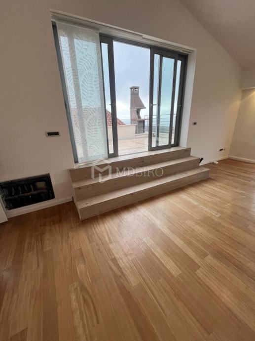 Iz dnevnog boravka se s jedne strane izlazi na balkon, a s druge strane na povišenu terasu. Grijanje i hlađenje su na dizalicu topline. Postavljena je aluminijska stolarija i protuprovalna vrata.