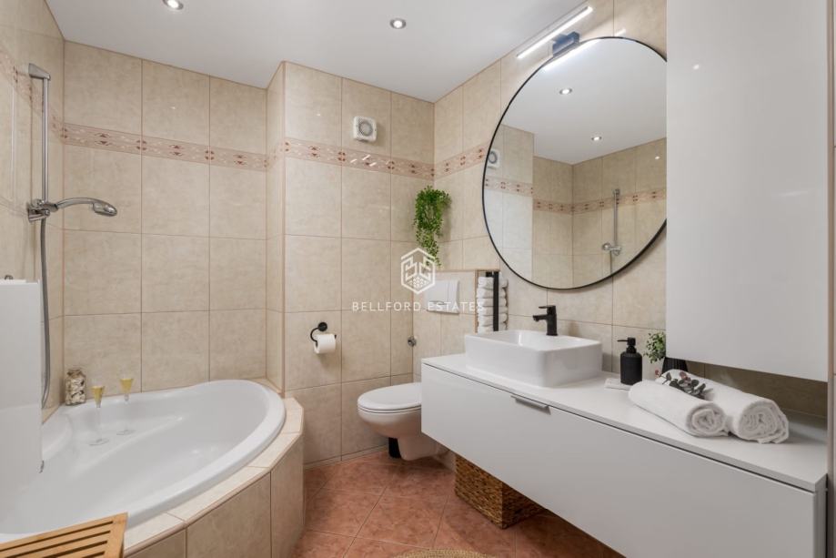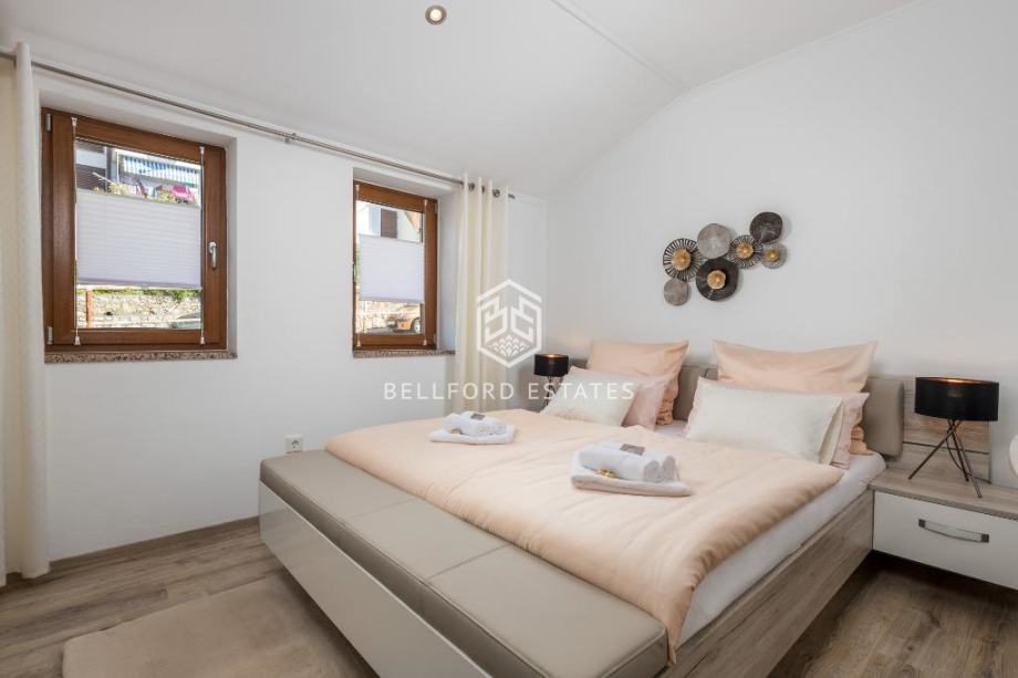 - Veliki stan (120 m2): Prostran dvoetažni stan rasporeda 3S+DB, idealan za veću obitelj.