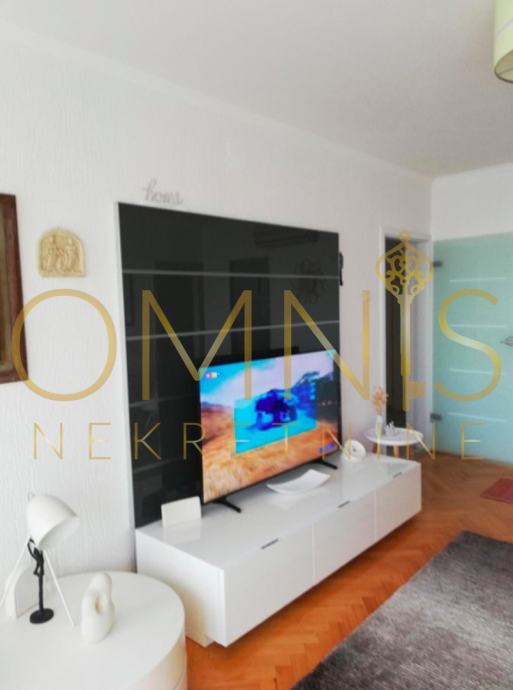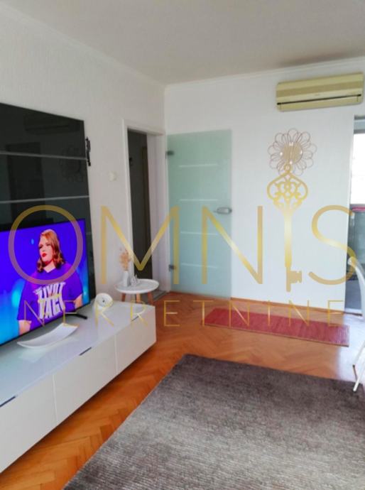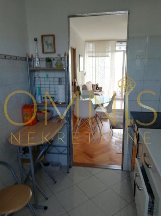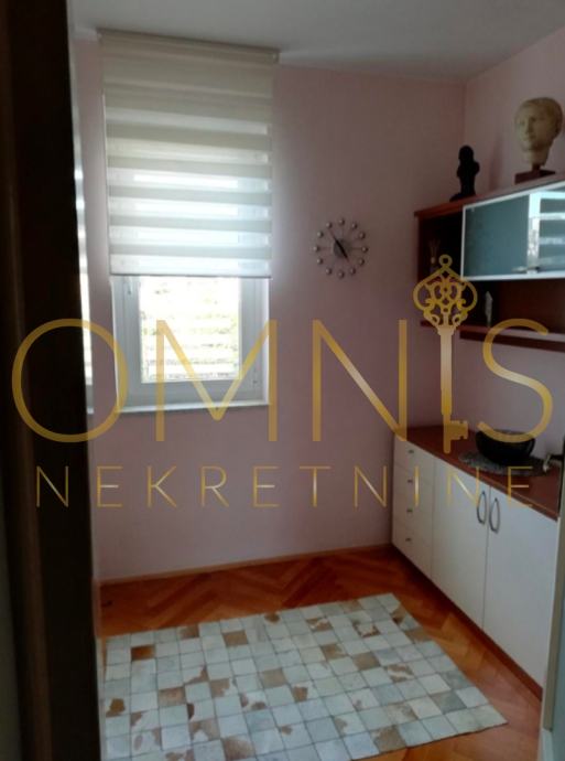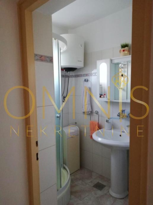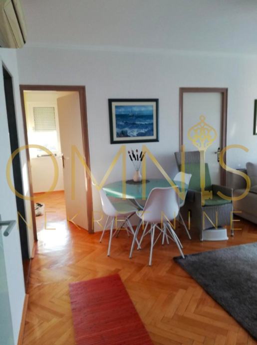 Stan je kompletno namješten, te se sastoji od dvije sobe, dnevnog boravka s blagavaonicom, kuhinje, kupaonice, wc-a i balkona s pogledom na more.