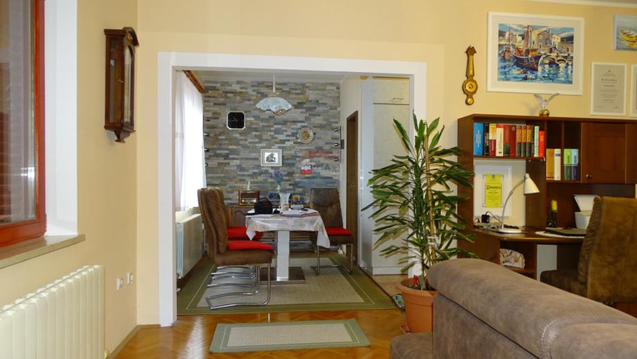 Prodaje se adaptirana samostojeća kuća na odličnoj lokaciji. Sastoji se od dva stana, poslovnog prostora, konobe, natkrivenog parkirnog mjesta i velike okućnice.