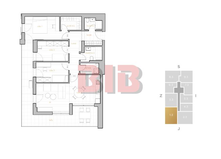 STAN 1.3 na trećem katu, koji se sastoji od: hodnika, dvije kupaonice, tri