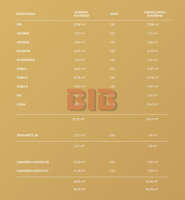 površine 21,43 m2 ), sveukupne korisne (neto) površine 111,26 m2 (korisne vrijednosti