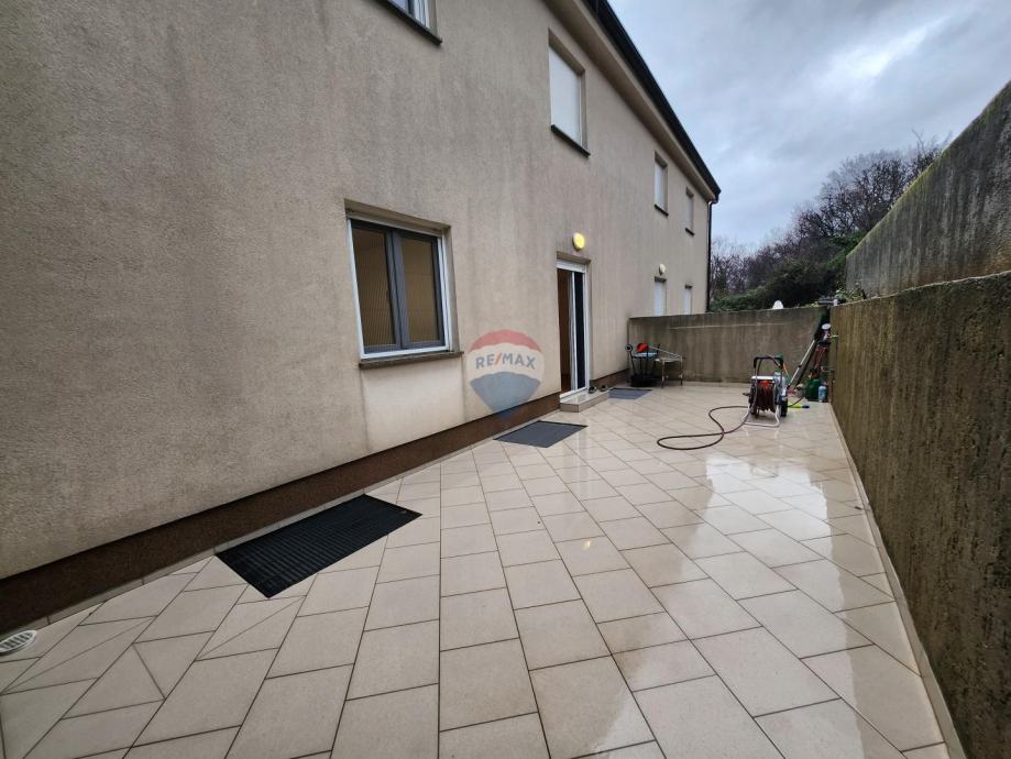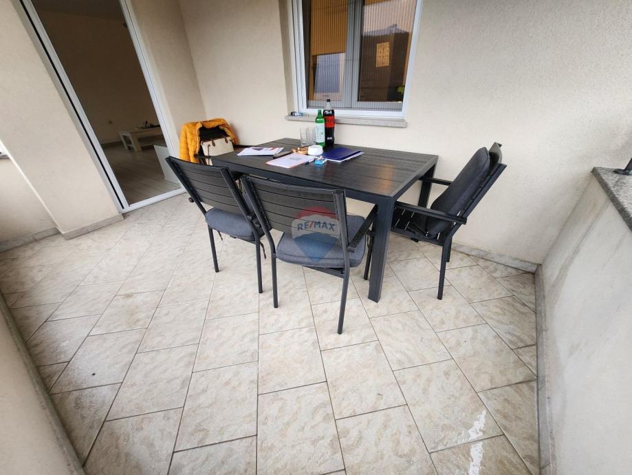 Stan se nalazi u visokom prizemlju sa pripadajućom zatvorenom terasom od 36m2 i 2 parkirna mjesta unutar okućnice zgrade.