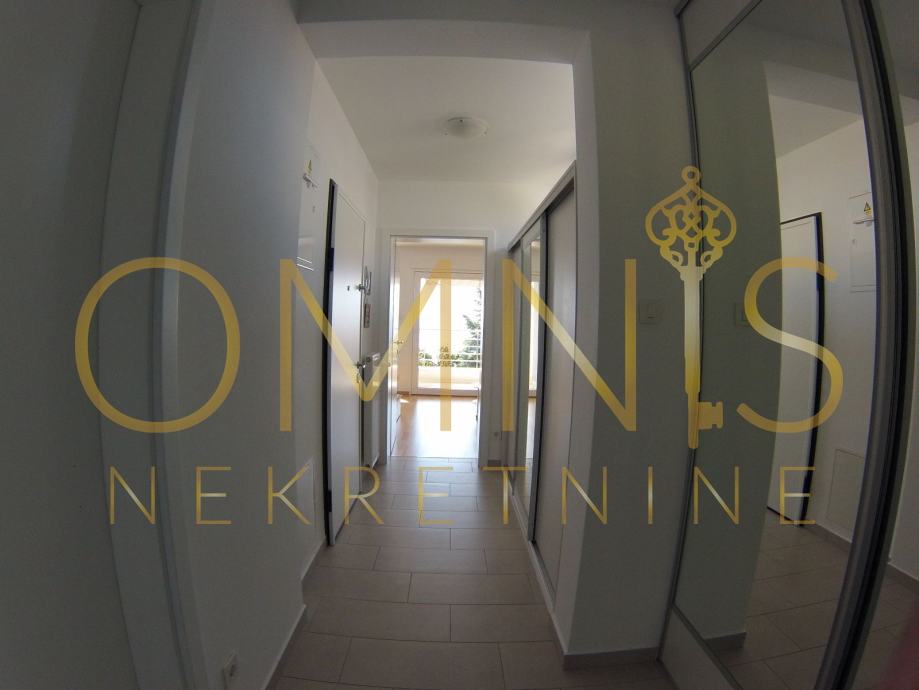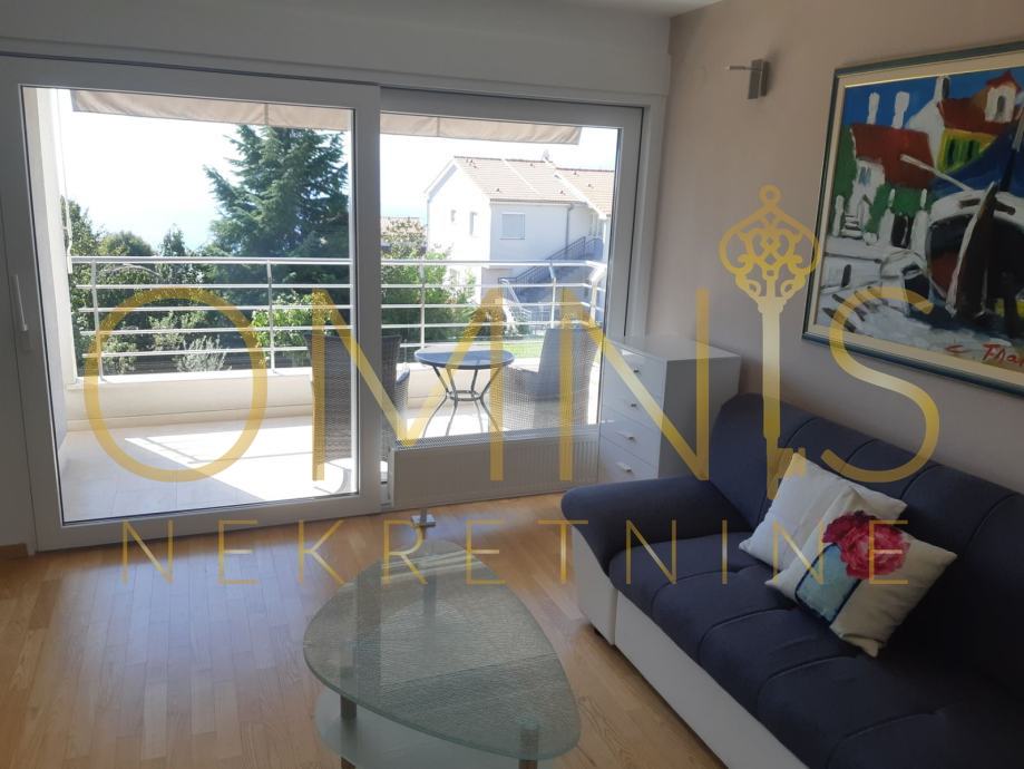 Stan se sastoji od južno orijentiranog dnevnog boravka, kuhinje s blagovaonom, spavaće sobe, te balkona koji pruža pogled na zelenilo i more.