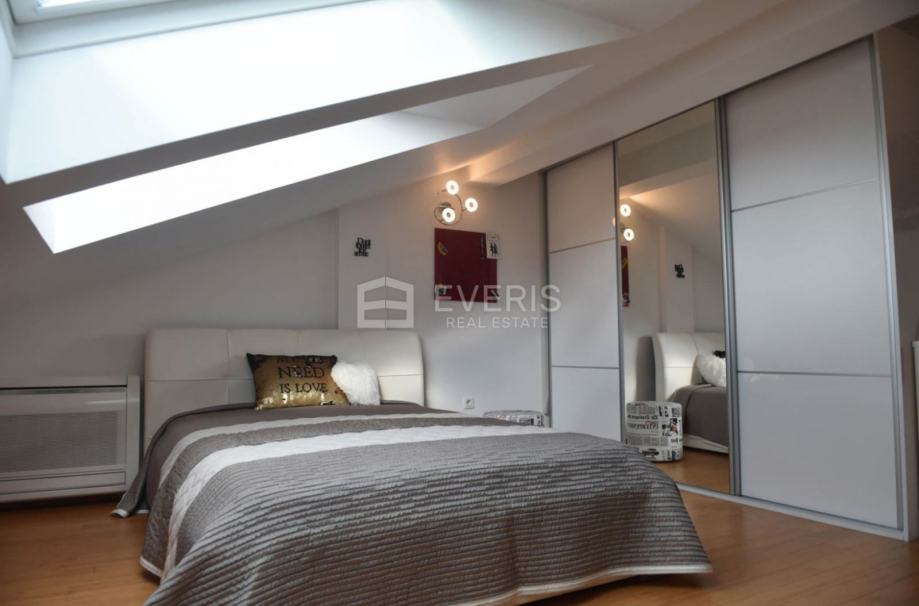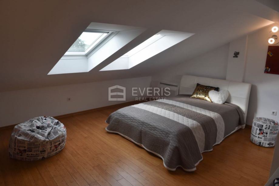 Prodaje se prostran i ekskluzivan dvoetažni stan na drugom katu i potkrovlju, ukupne netto površine 186 m2. Ovaj stan odlikuje se izuzetnom funkcionalnošću i modernim rasporedom, koji uključuje kuhinju spojenu s dnevnim boravkom i blagovaonicom, četiri prostrane sobe, dvije kupaonice s WC-om, te dva balkona koja pružaju dodatni komfor i prostor za opuštanje.