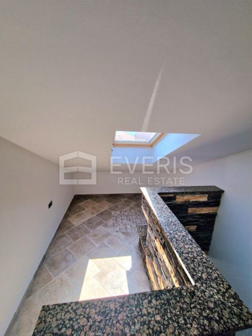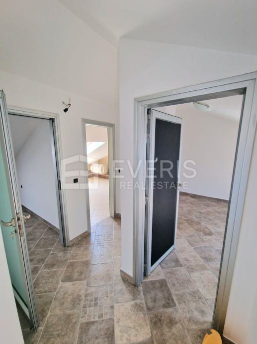 Dvoetažni stan se nalazi na prvom katu i potkrovlju a sastoji se od: