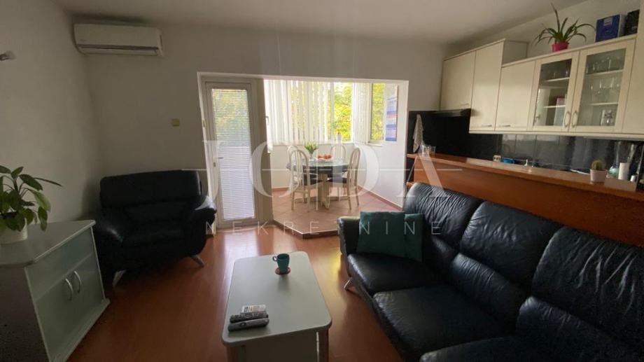 Ugodan stan za obitelj, 3S + DB, mali balkon i spremište. Parking ispred zgrade. Grijanje soba i kupaone na keramičke ploče a u dnevnom boravku klima uređaj.
