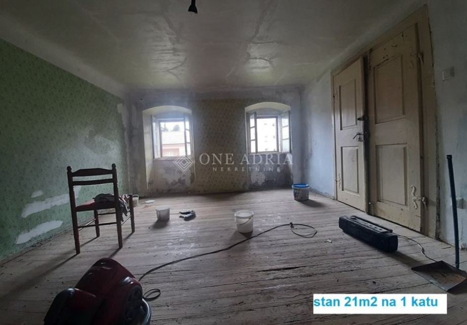Prodaju se dva stana u istoj zgradi, jedan površine 58 m² smješten na drugom katu i drugi površine 22 m² na prvom katu. Stan na prvom katu je u potpunosti za kompletnu adaptaciju, dok je stan na drugom katu useljiv i spreman za korištenje. Uz stanove dolazi i vrt iza kuće ukupne površine 437 m², kao i tavan koji se nalazi iznad stana na drugom katu, što dodatno povećava potencijal nekretnine. Nekretnina je u postupku etažiranja te je kupnja moguća isključivo za gotovinu.