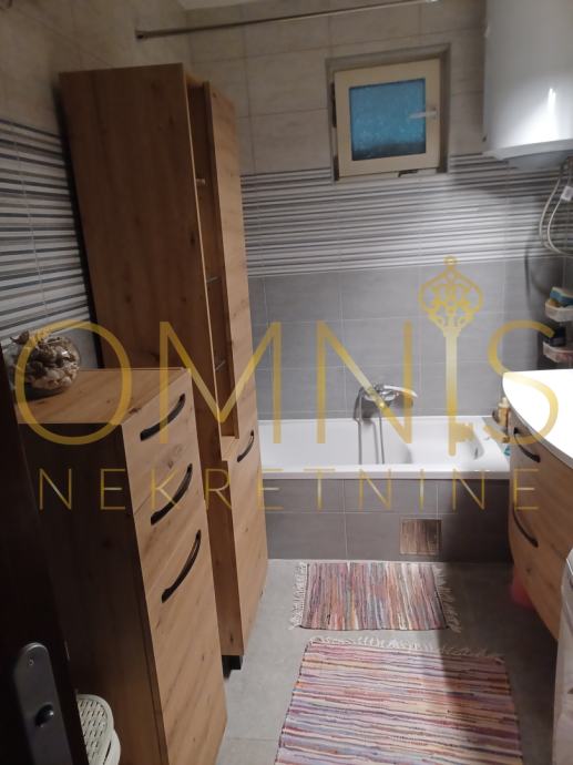 Prodajemo prekrasnu etažu na mirnoj i tihoj lokaciji. U kuću su dva stana te svaki ima svoj ulaz. Nekretnina se sastoji od dvije spavaće sobe, dnevnog boravka , kuhinje i blagavaonice, hodnika, kupaonice s wc-om te prostrane terase. Ispod stana koje je radi konfiguracije terena pravo prizemlje se sastoji od dva spremišta veličine 21, 26 m2 te drugog spremišta 27, 53 m2 koje trenutno koristi kao uredski prostor sadašnjim vlasnicima( po potrebi može biti stan, konoba ili nešto drugo po želji kupca). U spremištu koje je uređeno postoji sanitarni čvor. Stanu također pripada ograđena uređena okućnica od skoro 900 m2. Grijanje i hlađenje je na klima uređaj. Instalacije su mijenjane unazd nekoliko godina te je nekretnina odmah useljiva. Odlična nekretnina nedaleko od centra grada sa pravom oazom mira i zelenila. Parkirna mjesta su dostupna ispred kuće, no po želji si budući kupac može napraviti i na vlastitoj okućnici.