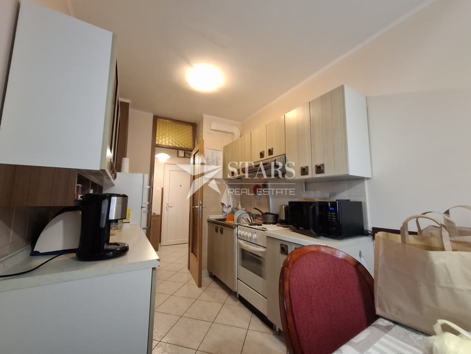 Stan se sastoji od kuhinje s blagovaonicom i dnevnim boravkom koji ima francuski balkon južne orijentacije s pogledom na more.
