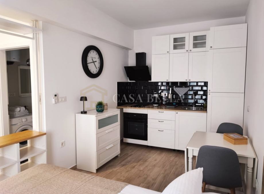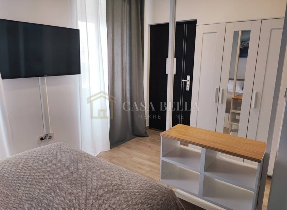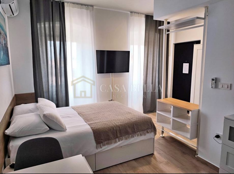 Površine 25 m², stan se nalazi u novoj manjoj zgradi a sastoji od dnevno-spavaćeg prostora povezanog s kuhinjom te kupaonice. Opremljen je klima uređajem, televizijom i internetom. Zbog izvrsne lokacije idealan je za studente.